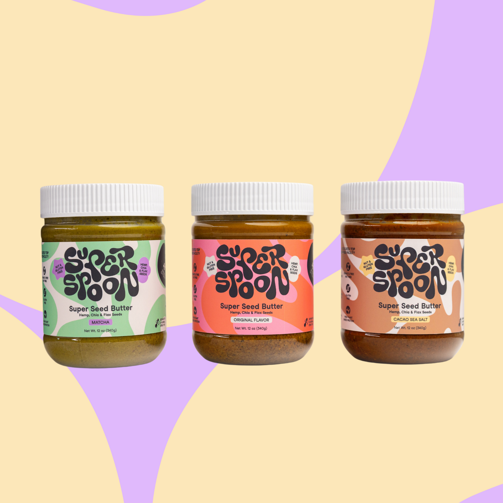 Discover the ultimate trio with our Super Seed Butter Variety Pack. Enjoy the earthy sweetness of our Original flavor, crafted with organic hemp seeds, flax, chia, oats, and a cozy spice blend. Savor the unique, subtly sweet Matcha blend, rich in antioxidants. Indulge in the Cacao Sea Salt, where rich cacao meets sweet date syrup and sea salt for a perfect balance. Perfect on toast, in smoothies, or straight from the jar!